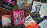 Sejumlah buku-buku yang dibaca oleh massa perempuan Piknik Melawan saat menggelar aksi kreatif di depan Gerbang Pancasila Gedung DPR/MPR RI, Jakarta, Senin (21/4/2025). Aksi kreatif ini digelar dalam rangka memperingati Hari Kartini sekaligus menyuarakan perlawanan terhadap militerisme dan patriarki, dua wajah dari satu tubuh kekuasaan yang sama yang kerap menjadikan perempuan sebagai sasaran utama. (FOTO : Republika/Prayogi)