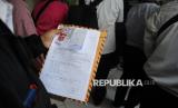 Warga menunjukkan nomor antrian untuk menyerahkan surat lamaran sebagai petugas Penanganan Prasarana dan Sarana Umum (PPSU) di Loket Penerimaan Surat dan Barang, Balai Kota DKI Jakarta, Selasa (22/4/2025). Sejak pagi hingga siang ini, warga masih memadati loket untuk menyerahkan lamaran. Terlihat pencari kerja petugas PPSU tersebut berasal dari berbagai kalangan mulai dari usia muda hingga tua dengan berbagai latar belakang pendidikan. Pemprov DKI mengapresiasi antusiasme warga yang melamar sebagai PPSU, dan lainnya. Pemerintah berjanji akan melaksanakan proses seleksi secara profesional dan transparan. Gubernur DKI Jakarta Pramono Anung mengatakan warga yang ingin mengikuti rekrutmen PPSU bisa melalui kelurahan atau kecamatan. Pramono mengatakan berdasarkan hasil rapat, pada periode pertama Pemerintah Provinsi DKI Jakarta akan membuka sebanyak 1.100 lowongan. (FOTO : Republika/Prayogi)