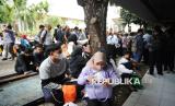 Warga menunggu panggilan untuk menyerahkan surat lamaran sebagai petugas Penanganan Prasarana dan Sarana Umum (PPSU) di Loket Penerimaan Surat dan Barang, Balai Kota DKI Jakarta, Selasa (22/4/2025). Sejak pagi hingga siang ini, warga masih memadati loket untuk menyerahkan lamaran. Terlihat pencari kerja petugas PPSU tersebut berasal dari berbagai kalangan mulai dari usia muda hingga tua dengan berbagai latar belakang pendidikan. Pemprov DKI mengapresiasi antusiasme warga yang melamar sebagai PPSU, dan lainnya. Pemerintah berjanji akan melaksanakan proses seleksi secara profesional dan transparan. Gubernur DKI Jakarta Pramono Anung mengatakan warga yang ingin mengikuti rekrutmen PPSU bisa melalui kelurahan atau kecamatan. Pramono mengatakan berdasarkan hasil rapat, pada periode pertama Pemerintah Provinsi DKI Jakarta akan membuka sebanyak 1.100 lowongan. (FOTO : Republika/Prayogi)