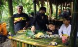 Pengunjung menikmati berbagai kuliner tradisional saat peresmian Pasar Sisi Walungan Cikapundung Cikalapa (Cika Cika) di Dago Pojok, Tanggulan Cikalapa, Kota Bandung, Selasa (22/4/2025). Hadirnya kawasan ini merupakan tindak lanjut dan wujud nyata program revitalisasi Sungai Cikapundung, selain berfungsi secara ekologis juga untuk kesejahteraan masyarakat. (FOTO : Edi Yusuf)