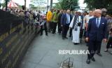 Para delegasi mengunjungi Palestina Walk saat Historical Walk mengenang 70 tahun Konferensi Asia Afrika, di kawasan Alun-alun Kota Bandung, Rabu (23/4/2025). Dalam acara tersebut 20 delegasi mengunjungi sejumlah titik tempat bersejarah di kawasan Jalan Asia Afrika hingga Alun-alun Kota Bandung. (FOTO : Edi Yusuf)