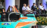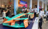 Sejumlah orang berfoto di dekat mobil balap Formula E di Balai Kota Jakarta, Kamis (24/4/2025). Pemprov DKI Jakarta bersama PT Jakpro, dan Ikatan Motor Indonesia siap menggelar ajang balap Formula E Jakarta E-Prix 2025 di Jakarta International E-Prix Circuit (JIEC) Ancol pada 21 Juni 2025 yang akan memperkuat peran Jakarta sebagai destinasi wisata olahraga ramah lingkungan bertaraf internasional. (FOTO : Bayu Adji Prihammanda/Republika)