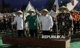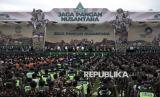 REPUBLIKA.CO.ID, BANYUMAS -- Anggota Banser mengikuti pengukuhan 100.000 Banser Patriot Ketahahan Pangan, pada puncak kegiatan hari lahir GP Ansor ke-91 di GOR Satria, Banyumas, Jawa Tengah, Kamis (24/4/2025).