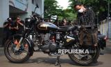 Petugas KPK mengecek motor Royal Enfield sitaan milik mantan Gubernur Jawa Barat Ridwan Kamil di Rumah Penyimpanan Benda Sitaan dan Barang Rampasan (Rupbasan) KPK, Cawang, Jakarta, Jumat (25/4/2025). Motor Royal Enfield tipe Classic 500 Limited Edition milik Ridwan Kamil tersebut merupakan salah satu dari 26 kendaraan yang disita KPK terkait kasus dugaan korupsi pengadaan iklan di Bank Pembangunan Daerah Jawa Barat dan Banten (Bank BJB) yang menyebabkan kerugian negara mencapai Rp222 miliar. (FOTO : ANTARA FOTO/Indrianto Eko Suwarso)