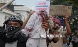 Bertepatan dengan momentum peringatan 70 tahun Konferensi Asia Afrika (KAA) Puluhan massa dari Solidaritas Seni Palestina dan Bandung Spirit for Palestina menggelar aksi Gaza Memanggil, di Jalan Asia Afrika, Kota Bandung, Jumat (25/4/2025). Dalam aksi bela Palestina yang bertajuk Asia Afrika Berkabung Festival 2025 ini mereka menyatakan sikap menuntut kepada pemerintah Indonesia agar segera memutus hubungan terkait apapun terhadap zeonis Israel dan Amerika Serikat, serta bertidak untuk menghentikan suplai senjata genosida oleh Amerika kepada zionis Israel. (FOTO : Edi Yusuf)