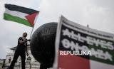 REPUBLIKA.CO.ID, BANDUNG -- Aktivis yang tergabung dalam Bandung Spirit For Palestine melakukan aksi solidaritas seni untuk Palestina di kawasan jalan Asia Afrika Bandung, Jawa Barat, Jumat (25/4/2025).