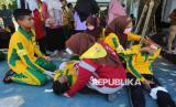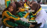 REPUBLIKA.CO.ID, ACEH -- Anggota Usaha Kesehatan Sekolah (UKS) memberikan pengobatan terhadap rekannya yang mengalami luka saat simulasi gempa dan tsunami di SMA Negeri 6 Banda Aceh, Aceh, Sabtu (26/4/2025).