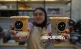 Pekerja difabel menunjukan kopi buatannya di kafe Difabis di kawasan Terowongan Kendal, Jakarta, Sabtu (26/4/2025). Kafe Difabis yang didirikan oleh koperasi difabel dan didukung oleh Pemprov DKI Jakarta serta Baznas DKI Jakarta tersebut memberikan kesempatan bekerja bagi difabel. Kafe tersebut telah menyerap tenaga kerja kelompok difabel sebanyak 21 orang yang tersebar di tujuh titik kafe Difabis. Dalam sehari, mereka mampu menjual sebanyak 130 gelas minuman dengan harga beragam mulai dari Rp18 ribu hingga Rp25 ribu. Keberadaan kafe tersebut menjadi salah satu contoh bagi pelaku usaha dalam menciptakan peluang bisnis yang inklusif dan ramah difabel. (FOTO : Republika/Thoudy Badai)