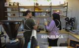 Pekerja difabel berbincang dengan rekannya di sela-sela melayani pembeli di kafe Difabis di kawasan Terowongan Kendal, Jakarta, Sabtu (26/4/2025). Kafe Difabis yang didirikan oleh koperasi difabel dan didukung oleh Pemprov DKI Jakarta serta Baznas DKI Jakarta tersebut memberikan kesempatan bekerja bagi difabel. Kafe tersebut telah menyerap tenaga kerja kelompok difabel sebanyak 21 orang yang tersebar di tujuh titik kafe Difabis. Dalam sehari, mereka mampu menjual sebanyak 130 gelas minuman dengan harga beragam mulai dari Rp18 ribu hingga Rp25 ribu. Keberadaan kafe tersebut menjadi salah satu contoh bagi pelaku usaha dalam menciptakan peluang bisnis yang inklusif dan ramah difabel. (FOTO : Republika/Thoudy Badai)