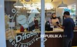Pekerja difabel melayani pembeli di kafe Difabis di kawasan Terowongan Kendal, Jakarta, Sabtu (26/4/2025). Kafe Difabis yang didirikan oleh koperasi difabel dan didukung oleh Pemprov DKI Jakarta serta Baznas DKI Jakarta tersebut memberikan kesempatan bekerja bagi difabel. Kafe tersebut telah menyerap tenaga kerja kelompok difabel sebanyak 21 orang yang tersebar di tujuh titik kafe Difabis. Dalam sehari, mereka mampu menjual sebanyak 130 gelas minuman dengan harga beragam mulai dari Rp18 ribu hingga Rp25 ribu. Keberadaan kafe tersebut menjadi salah satu contoh bagi pelaku usaha dalam menciptakan peluang bisnis yang inklusif dan ramah difabel. (FOTO : Republika/Thoudy Badai)