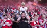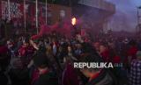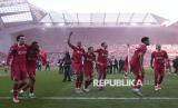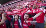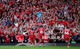 REPUBLIKA.CO.ID, LIVERPOOL -- Pendukung Liverpool merayakan gelar Liga Primer Inggris 2024/2025 di kandang sendiri, Anfield, Ahad (27/4/2025).