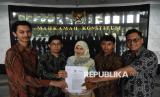 Mahasiswa Fakultas Hukum Universitas Padjajaran (Unpad) mengajukan berkas permohonan uji formil UU TNI di Gedung Mahkamah Konstitusi (MK), Jakarta, Selasa (29/4/2025). Permohonan uji formil terhadap UU No.3 Tahun 2025 tentang perubahan atas UU No.34 Tahun 2024 tentang TNI atau UU TNI yang diajukan kelima mahasiswa tersebut sebagai bentuk tanggung jawab akademik mereka sebagai mahasiswa fakultas hukum untuk memastikan proses pembentukan UU dilakukan sesuai prosedur dan mekanisme yang diatur dalam UUD 1945 dan peraturan perundang-undangan terkait. (FOTO : ANTARA FOTO/Indrianto Eko Suwarso)