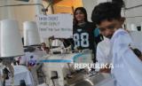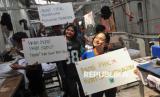 REPUBLIKA.CO.ID, JAKARTA -- Selebgram Citayam Fashion Week (CFW) membawa tulisan berisi dukungan bagi pekerja dan pelaku UMKM konveksi di industri rumahan Sinergi Adv Nusantara, Jakarta, Rabu (30/4/2025).