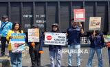 REPUBLIKA.CO.ID, LAMPUNG -- Relawan dari komunitas Railfans membentangkan poster saat Kampanye Keselamatan di perlintasan kereta api di Jalan Pemuda, Kampung Sawah Lama, Tanjungkarang Timur, Bandar Lampung, Lampung, Kamis, (1/5/2025).