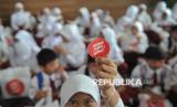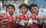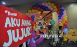 Sejumlah anak mengikuti kegiatan edukasi antikorupsi di Gedung ACLC KPK, Jakarta Selatan, Jumat (2/5/2025). Dalam rangka memperingati Hari Pendidikan Nasional, KPK menyelenggarakan kegiatan edukasi antikorupsi bagi ratusan siswa tingkat PAUD, SD hingga SMP sebagai upaya mengajak sekaligus mengajarkan terhadap anak tentang pentingnya budaya antikorupsi sejak dini. (FOTO : Republika/Thoudy Badai)