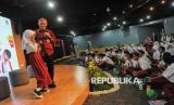 Wakil Ketua KPK Ibnu Basuki Widodo (kanan) mengedukasi pelajar terkait budaya antikorupsi di Gedung ACLC KPK, Jakarta Selatan, Jumat (2/5/2025). Dalam rangka memperingati Hari Pendidikan Nasional, KPK menyelenggarakan kegiatan edukasi antikorupsi bagi ratusan siswa tingkat PAUD, SD hingga SMP sebagai upaya mengajak sekaligus mengajarkan terhadap anak tentang pentingnya budaya antikorupsi sejak dini. (FOTO : Republika/Thoudy Badai)