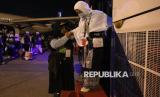 Petugas membantu jamaah calon haji kelompok terbang (kloter) ketiga Embarkasi Medan turun dari bus di Bandara Internasional Kualanamu, Kabupaten Deli Serdang, Sumatera Utara, Senin (5/5/2025). Sebanyak 353 jamaah calon haji dari Medan, Deli Serdang, Labuhanbatu, Labuhanbatu Utara, Tapanuli Utara, Asahan, Binjai, Padang Sidempuan, Padang Lawas, Toba, Samosir dan Pakpak Barat diberangkatkan ke Tanah Suci. (FOTO : ANTARA FOTO/Yudi Manar)