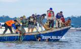 REPUBLIKA.CO.ID, KALTIM -- Sejumlah personel Basarnas gabungan dibantu warga mengevakuasi penumpang dari Kapal Motor Penumpang (KMP) Muchlisa yang tenggelam di Perairan Penajam Paser Utara, Kalimantan Timur, Senin (5/5/2025).