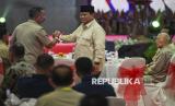 REPUBLIKA.CO.ID, JAKARTA -- Presiden Prabowo Subianto berjabat tangan dengan Plt Ketua Umum Persatuan Purnawirawan TNI Angkatan Darat (PPAD) Komaruddin Simanjuntak disaksikan Wakil Presiden ke-6 Try Sutrisno saat menghadiri halal bihalal PPAD di Jakarta, Selasa (6/5/2025).