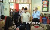 Presiden Prabowo Subianto bersama tokoh filantropi dunia sekaligus pendiri Microsoft Bill Gates meninjau pelaksanaan program Makan Bergizi Gratis (MBG) di SDN Jati 03, Pulogadung, Jakarta, Rabu (7/5/2025). Dalam kesempatan tersebut Presiden Prabowo Subianto bersama tokoh filantropi dunia sekaligus pendiri Microsoft Bill Gates melihat langsung kualitas dan antusias siswa SDN Jati 03, Pulogadung saat pelaksanaan Program Makan Bergizi Gratis (MBG). (FOTO : Republika/Prayogi)