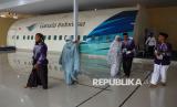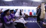 REPUBLIKA.CO.ID, JAKARTA -- Jamaah calon haji (JCH) mendengarkan penjelasan petugas di dalam replika (mock up) pesawat di Asrama Haji Makassar, Sulawesi Selatan, Rabu (7/5/2025).