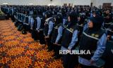 Sejumlah Panitia Penyelenggara Ibadah Haji (PPIH) mengikuti pelepasan keberangkatan ke Tanah Suci di Asrama Haji Cipondoh, Kota Tangerang, Banten, Rabu (7/5/2025). Sebanyak 535 PPIH Arab Saudi untuk daerah kerja Makkah dilepas keberangkatannya usai mengikuti bimbingan teknis pada 4-6 Mei 2025.  (FOTO : ANTARA FOTO/Putra M. Akbar)