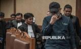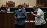 Terdakwa kasus suap vonis bebas Gregorius Ronald Tannur, Heru Hanindyo (kedua kanan) berjalan keluar usai menjalani sidang pembacaan putusan di Pengadilan Tipikor, Jakarta, Kamis (8/5/2025). Majelis hakim memvonis hakim PN Surabaya nonaktif Heru Hanindyo dengan pidana penjara selama 10 tahun serta denda sebesar Rp500 juta subsider pidana kurungan selama 3 bulan. (FOTO : ANTARA FOTO/Fauzan)