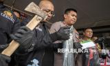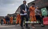 REPUBLIKA.CO.ID, CIMAHI -- Polisi menggiring tersangka sebelum konferensi pers operasi pemberantasan premanisme di Polres Cimahi, Kota Cimahi, Jawa Barat, Jumat (9/5/2025).