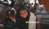 REPUBLIKA.CO.ID, GAZA -- Seorang ibu Palestina Ward Nar hanya bisa menangis diantara suami dan kedua anaknya setelah gagal mendapatkan makanan dari dapur umum di Khan Younis, Jalur Gaza, Jumat (9/5/2025).