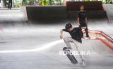 Warga bermain sepatu roda di Flyover (FO) Slipi Skatepark, Jakarta, Senin (12/5/2025). Terletak di bawah flyover, area yang belum lama ini telah direvitalisasi menjadi skatepark modern yang terbuka untuk umum selama 24 jam tanpa dipungut biaya. Skatepark ini ramah untuk pemula maupun skater profesional, dan juga mendukung olahraga lain seperti BMX, otopet, dan sepatu roda. Fasilitas penunjang seperti musolah, toilet umum, dan tempat duduk turut tersedia. Salah satu warga yang juga pemain skateboard Ario, menyebut skatepark ini jauh lebih baik dibanding sebelumnya. Ia berharap pemerintah terus bekerja sama dengan komunitas skateboard dan lainnya untuk menambah fasilitas serupa di Jakarta guna mendorong dan mencetak atlet-atlet nasional di masa depan. (FOTO : Republika/Prayogi)