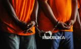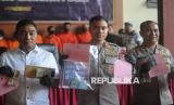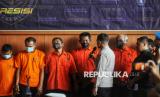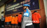 REPUBLIKA.CO.ID, JAKARTA -- Sejumlah tersangka dihadirkan saat rilis kasus dugaan tindak pidana premanisme dengan pemerasan atau perbuatan tidak menyenangkan disertai kekerasan dan ancaman di Polres Metro Jakarta Pusat, Senin (12/5/2025).