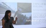 Presiden Direktur DASSA Corp. Sylviana Andhella memberikan penjelasan saat workshop dengan tema STOP, SHOOT, SAVE Turning street photography into climate action di sela-sela pameran foto pameran bertajuk Seen by Her di DOSS Photo Gallery, Ratu Plaza, Jakarta, Ahad (11/5/2025). Sebagai seorang Konservationis sekaligus peserta pameran Sylviana mengajak masyarakat lebih peduli pada alam dan menjadikan karya visual medium agar kita semua menjaga alam. (FOTO : Dok Republika)
