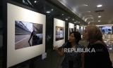 Pengunjung melihat karya foto yang dipajang dalam pameran foto pameran bertajuk Seen by Her di DOSS Photo Gallery, Ratu Plaza, Jakarta, Ahad (11/5/2025). Sebagai seorang Konservationis sekaligus peserta pameran Sylviana mengajak masyarakat lebih peduli pada alam dan menjadikan karya visual medium agar kita semua menjaga alam. (FOTO : Dok Republika)