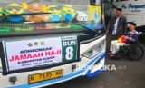 Seorang calon haji bersiap memasuki bus saat pelepasan dan pemberangkatan di halaman Pendopo Kabupaten Kudus, Jawa Tengah, Selasa (13/5/2025). Sebanyak 1.416 calon haji kloter 46, 47, 48, 49, dan 50 dari Kabupaten Kudus diberangkatkan secara bertahap menuju Asrama Haji Donohudan Boyolali dan selanjutnya diterbangkan menuju Tanah Suci. (FOTO : ANTARA FOTO/Yusuf Nugroho)