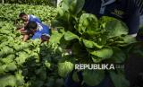 Warga binaan pemasyarakatan (WBP) memanen sayur sawi hijau di Lembaga Pemasyarakatan (Lapas) Kelas II A Ambarawa, Kabupaten Semarang, Jawa Tengah, Rabu (14/5/2025). Lapas Kelas IIA Ambarawa juga membina warga binaan untuk terlibat dalam budidaya pertanian mandiri di dalam lingkungan lapas sebagai bagian dari upaya ketahanan pangan. Selain berkebun, napi juga diajarkan keterampilan merajut jaring ikan. (FOTO : ANTARA FOTO/Aprillio Akbar)