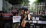 Gerakan Masyarakat Adili Soeharto (Gemas) menggelar aksi penolakan rencana pemberian gelar pahlawan untuk Soeharto di depan Kantor Kementerian Sosial, Jakarta, Kamis (15/5/2025). Mereka mendesak pemerintah membatalkan rencana pemberian gelar pahlawan nasional kepada Soeharto. Penolakan ini berdasarkan pada rekam jejak Soeharto selama 32 tahun menjabat sebagai Presiden karena diduga melakukan kekerasan terhadap warga sipil, pelanggaran HAM bahkan pelanggaran berat terhadap HAM, penyalahgunaan wewenang dan kekuasaan, serta praktik korupsi, kolusi, dan nepotisme (KKN). (FOTO : Republika/Prayogi)