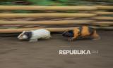 Dua ekor marmot beradu cepat saat tradisi Karapan Marmot di Desa Tegalbangsri, Kecamatan Ranuyoso, Lumajang, Jawa Timur, Ahad (18/5/2025). Perlombaan yang diikuti 48 peserta tersebut merupakan tradisi menjelang musim kemarau sekaligus sarana hiburan bagi warga sekitar.  (FOTO : ANTARA FOTO/Irfan Sumanjaya)