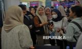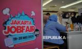 Pencari kerja saat menghadiri pameran bursa kerja Jakarta Jobfair di Gelanggang Olahraga Pulo Gadung, Jakarta Timur, Senin (19/5/2025). Pemprov DKI Jakarta kembali menggelar pameran bursa kerja di dua titik di wilayah Jakarta Timur yakni di GOR Ciracas dan GOR Pulo Gadung selama dua hari hingga Selasa (20/5) besok. Sebanyak 37 perusahaan berpartisipasi dalam pameran tersebut dengan harapan mampu menyerap tenaga kerja untuk mengurangi angka pengangguran di DKI Jakarta. (FOTO : Republika/Thoudy Badai)