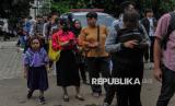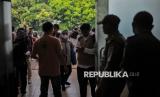 Pencari kerja mengantre saat menghadiri pameran bursa kerja Jakarta Jobfair di Gelanggang Olahraga Pulo Gadung, Jakarta Timur, Senin (19/5/2025). Pemprov DKI Jakarta kembali menggelar pameran bursa kerja di dua titik di wilayah Jakarta Timur yakni di GOR Ciracas dan GOR Pulo Gadung selama dua hari hingga Selasa (20/5) besok. Sebanyak 37 perusahaan berpartisipasi dalam pameran tersebut dengan harapan mampu menyerap tenaga kerja untuk mengurangi angka pengangguran di DKI Jakarta. (FOTO : Republika/Thoudy Badai)