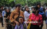 REPUBLIKA.CO.ID, JAKARTA -- Pencari kerja didampingi orang tuanya mengantre saat menghadiri pameran bursa kerja Jakarta Jobfair di Gelanggang Olahraga Pulo Gadung, Jakarta Timur, Senin (19/5/2025).