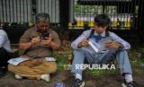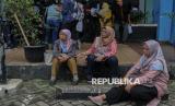 Para orang tua pencari kerja menunggu anaknya menghadiri pameran bursa kerja Jakarta Jobfair di Gelanggang Olahraga Pulo Gadung, Jakarta Timur, Senin (19/5/2025). Pemprov DKI Jakarta kembali menggelar pameran bursa kerja di dua titik di wilayah Jakarta Timur yakni di GOR Ciracas dan GOR Pulo Gadung selama dua hari hingga Selasa (20/5) besok. Sebanyak 37 perusahaan berpartisipasi dalam pameran tersebut dengan harapan mampu menyerap tenaga kerja untuk mengurangi angka pengangguran di DKI Jakarta. (FOTO : Republika/Thoudy Badai)