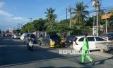 REPUBLIKA.CO.ID, BALIKPAPAN -- Anggota kepolisian mengatur dan menertibkan pengendara mobil yang mengantre untuk mengisi bahan bakar minyak (BBM) jenis Pertalite di salah satu SPBU di Balikpapan, Kalimantan Timur, Senin (19/5/2025).