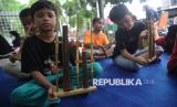 REPUBLIKA.CO.ID, JAKARTA -- Sejumlah anak mengikuti latihan angklung di RPTRA Matahari, Rawasari, Jakarta, Senin (19/5/2025).