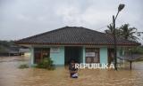 Warga terendam banjir di halaman Puskesmas Pembantu di Sukaresik, Kabupatena Tasikmalaya, Jawa Barat, Rabu (21/5/2025). Hujan deras yang mengguyur wilayah Kabupaten Tasikmalaya pada Selasa (20/5) malam, menyebabkan Sungai Citanduy dan Cikidang meluap dan menyebabkan 1.011 rumah warga terendam banjir dengan ketinggian 60 cm hingga dua meter, serta menewaskan seorang lansia tewas akibat tenggelam saat menjaring ikan. (FOTO : ANTARA FOTO/Adeng Bustomi)