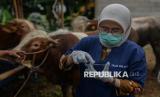 REPUBLIKA.CO.ID, JAKARTA -- Petugas dari Suku Dinas Ketahanan Pangan Kelautan dan Pertanian (KPKP) Jakarta Selatan melakukan pemeriksaan hewan kurban di salah satu lapak hewan kurban di kawasan Petukangan Utara, Jakarta Selatan, Kamis (22/5/2025).