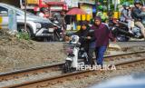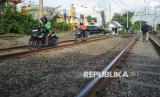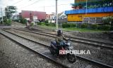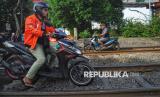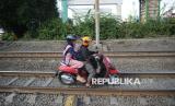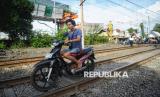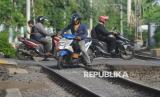 REPUBLIKA.CO.ID, JAKARTA -- Pengendara sepeda motor nekat melintasi jalur kereta api di Kawasan Pramuka, Jakarta, Kamis (22/5/2025).
