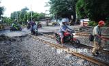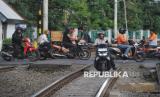 Pengendara sepeda motor nekat melintasi jalur kereta api di Kawasan Pramuka, Jakarta, Kamis (22/5/2025). Tindakan yang dilakukan pengendara tersebut sangat berbahaya karena dapat membahayakan keselamatan pengendara sendiri maupun perjalanan kereta yang melintas. Menurut keterangan warga sekitar, para pengendara memilih melintasi jalur kereta demi memangkas waktu tempuh dan menghindari putar balik yang cukup jauh. Meskipun demikian, tindakan tersebut tetap melanggar aturan dan berpotensi menyebabkan kecelakaan serius.Fenomena ini mencerminkan masih rendahnya kesadaran sebagian pengguna jalan terhadap pentingnya keselamatan di perlintasan rel. (FOTO : Republika/Prayogi)