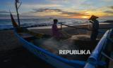 REPUBLIKA.CO.ID, PADANG -- Nelayan merapikan jaring ikannya sebelum berangkat ke laut di Pantai Pasie Nan Tigo, Padang, Sumatera Barat, Ahad (25/5/2025).