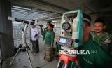 REPUBLIKA.CO.ID, JAKARTA -- Anggota tim dari Lembaga Falakiyah Pengurus Wilayah Nahdlatul Ulama DKI Jakarta dengan menggunakan Theodolite mengamati hilal di Masjid Hasyim Asyari, Jakarta, Selasa (27/05/2025).