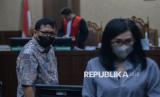 Terdakwa kasus dugaan suap vonis bebas terhadap Gregorius Ronald Tannur, Zarof Ricar (kanan) dan Lisa Rachmat (kiri) saat menjalani sidang tuntutan di Pengadilan Tipikor, Jakarta, Rabu (28/5/2025). Dalam sidang tersebut, jaksa penuntut umum (JPU) menjatuhkan tuntutan kepada mantan pejabat Mahkamah Agung (MA) Zarof Ricar pidana penjara 20 tahun membayar denda Rp1 miliar, ibunda Ronald Tannur Meirizka Widjaja dengan pidana penjara empat tahun dan denda Rp750 juta dan pengacara Gregorius Ronald Tannur, Lisa Rachmat penjara selama 14 tahun dan membayar denda Rp750 juta. (FOTO : Republika/Thoudy Badai)